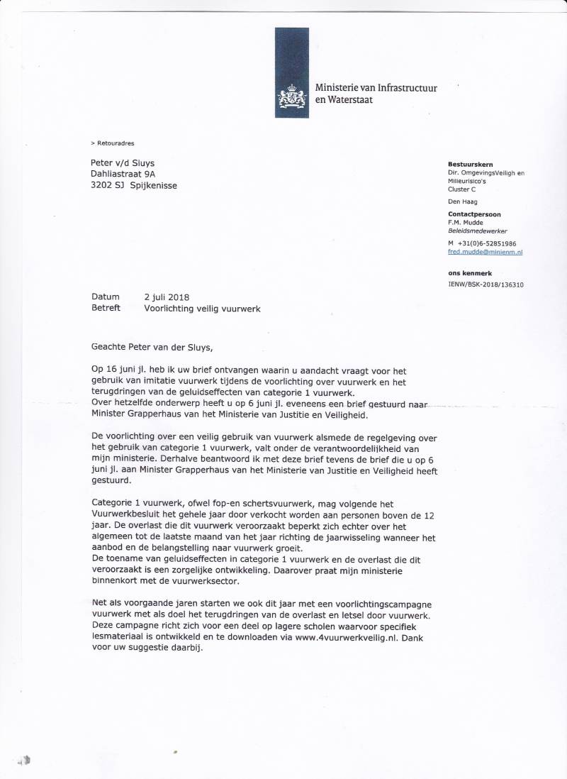 Hier is een brief van het Ministerie van Infrastructuur en Waterstaat mbt vuurwerk cat 1 en imitatie vuurwerk.